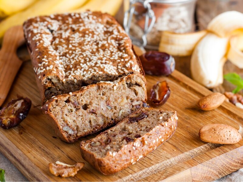 Bizcocho de trigo sarraceno, dátiles y plátano