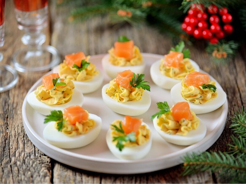Huevos cocidos rellenos de salmón 🎄