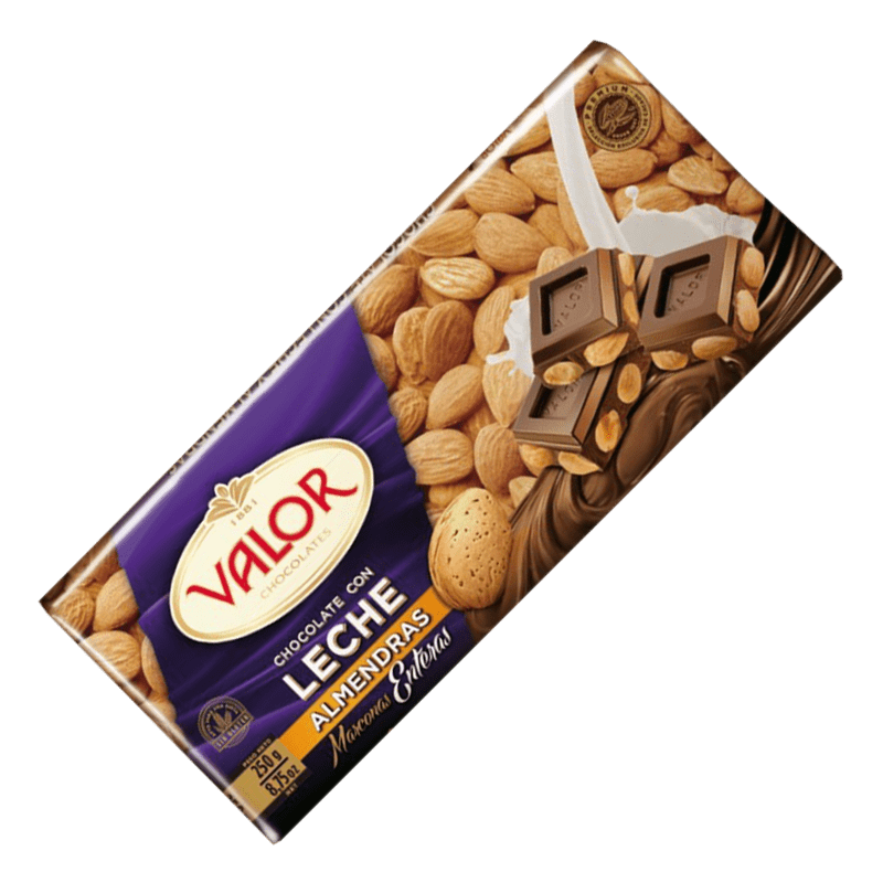 Chocolate Valor con leche y almendras marconas enteras 250g