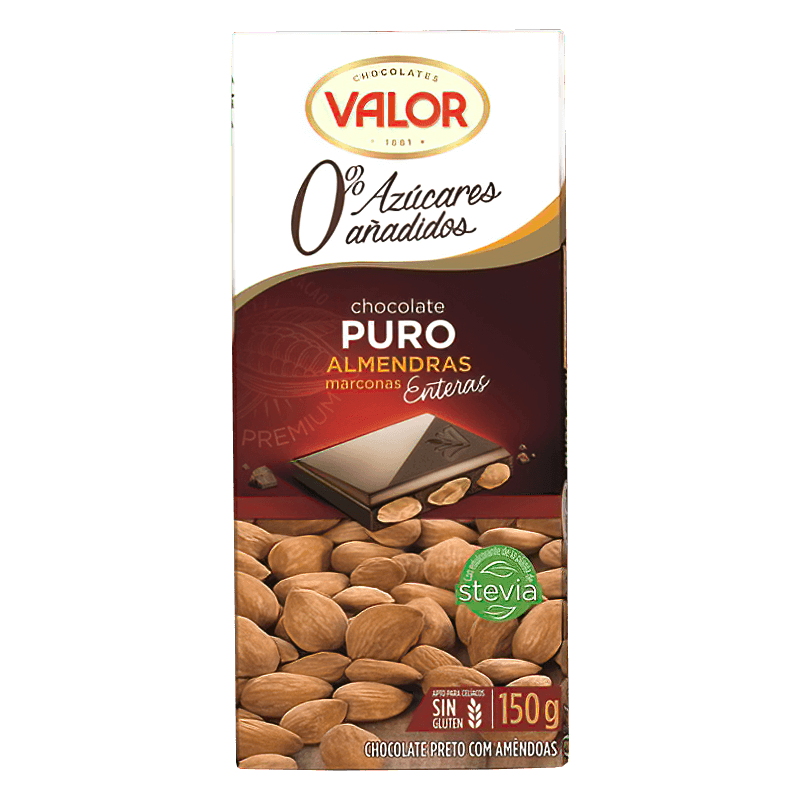 Chocolate Valor puro con almendras 0% azúcares añadidos 150G